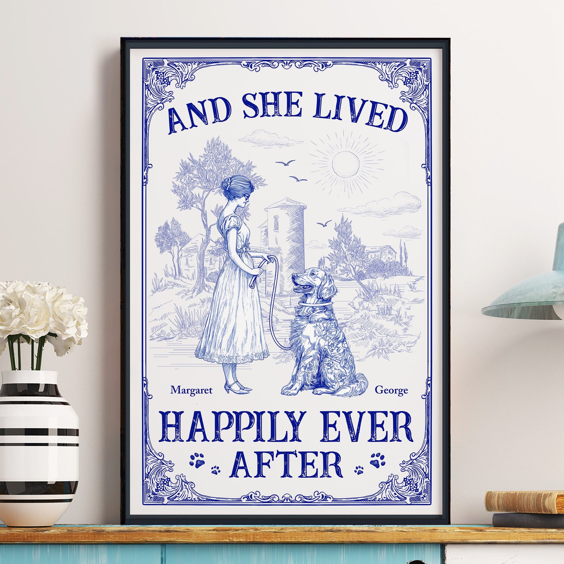 And She Lived Happily Ever After Dog Toile De Jouy - Personalized Poster