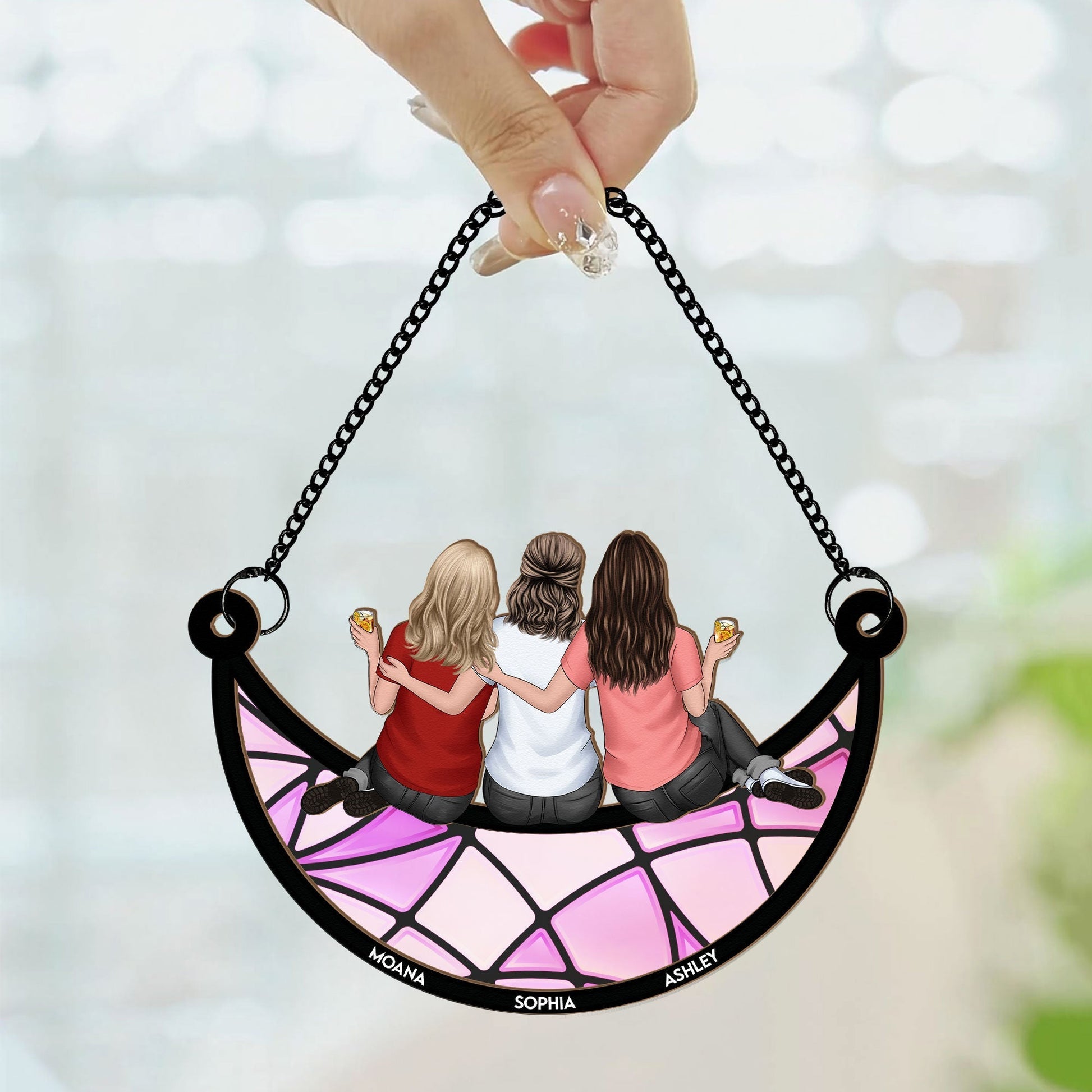 Friends, Sisters Sitting On The Moon - Personalized Window Hanging Suncatcher Ornament - Gifts For Women Christmas Gift For Friend