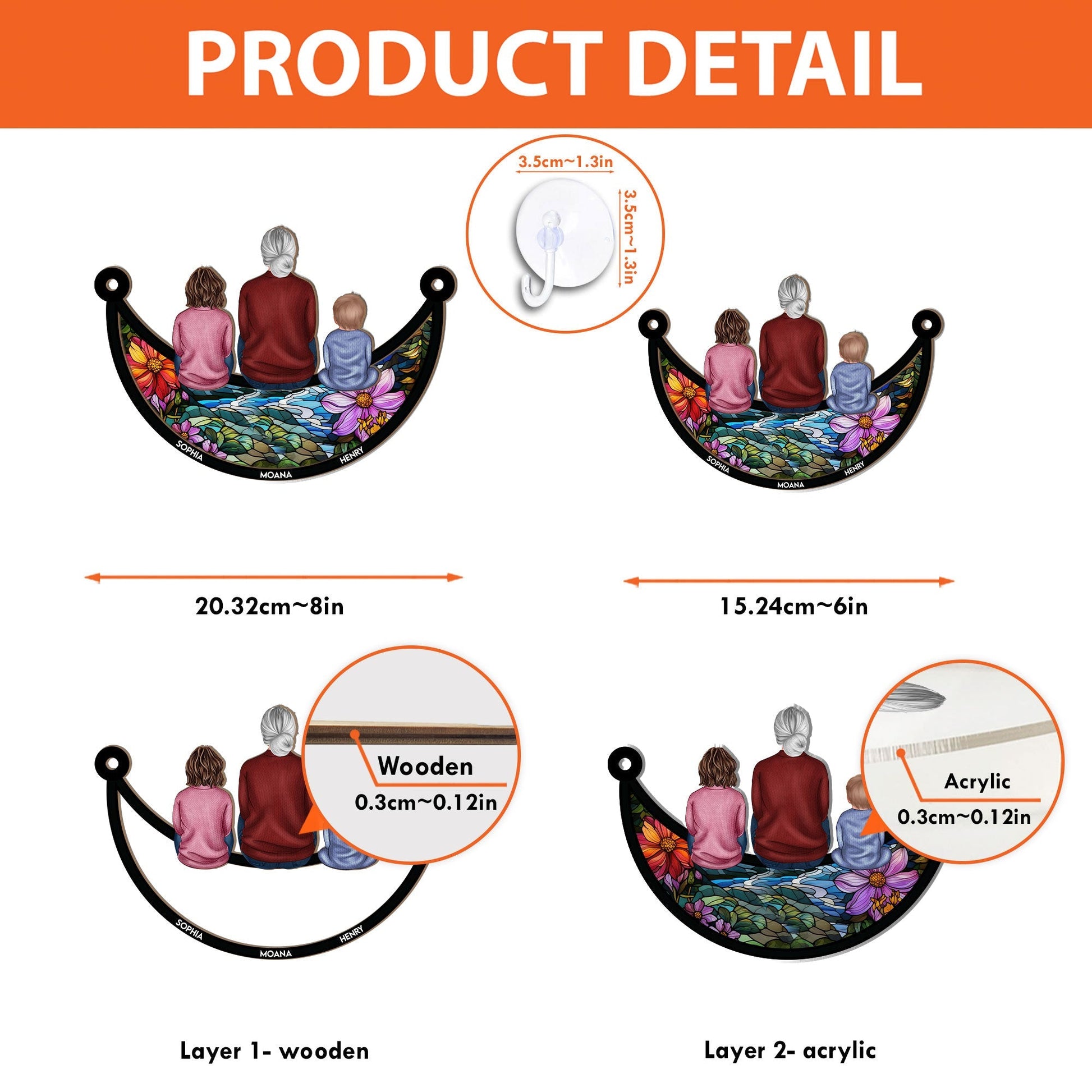 - The front of this suncatcher is made from premium natural wood and mounted on acrylic plexiglass.