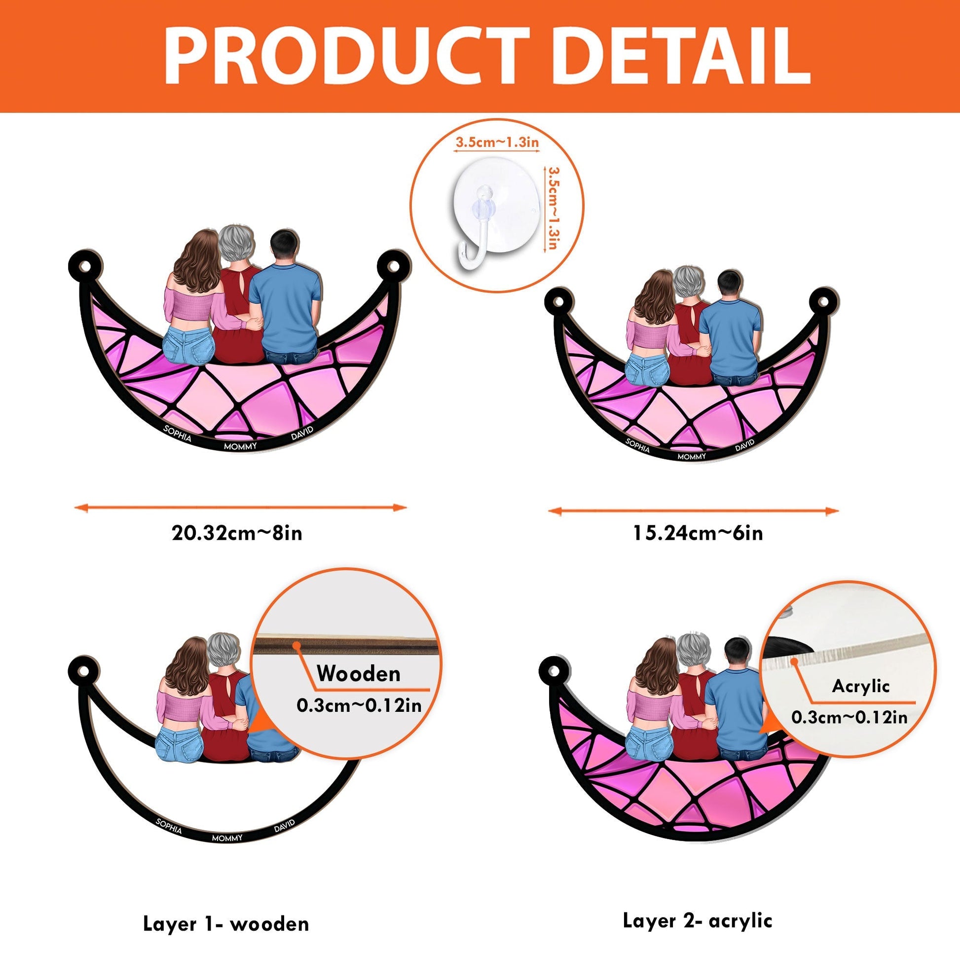 - The front of this suncatcher is made from premium natural wood and mounted on acrylic plexiglass.