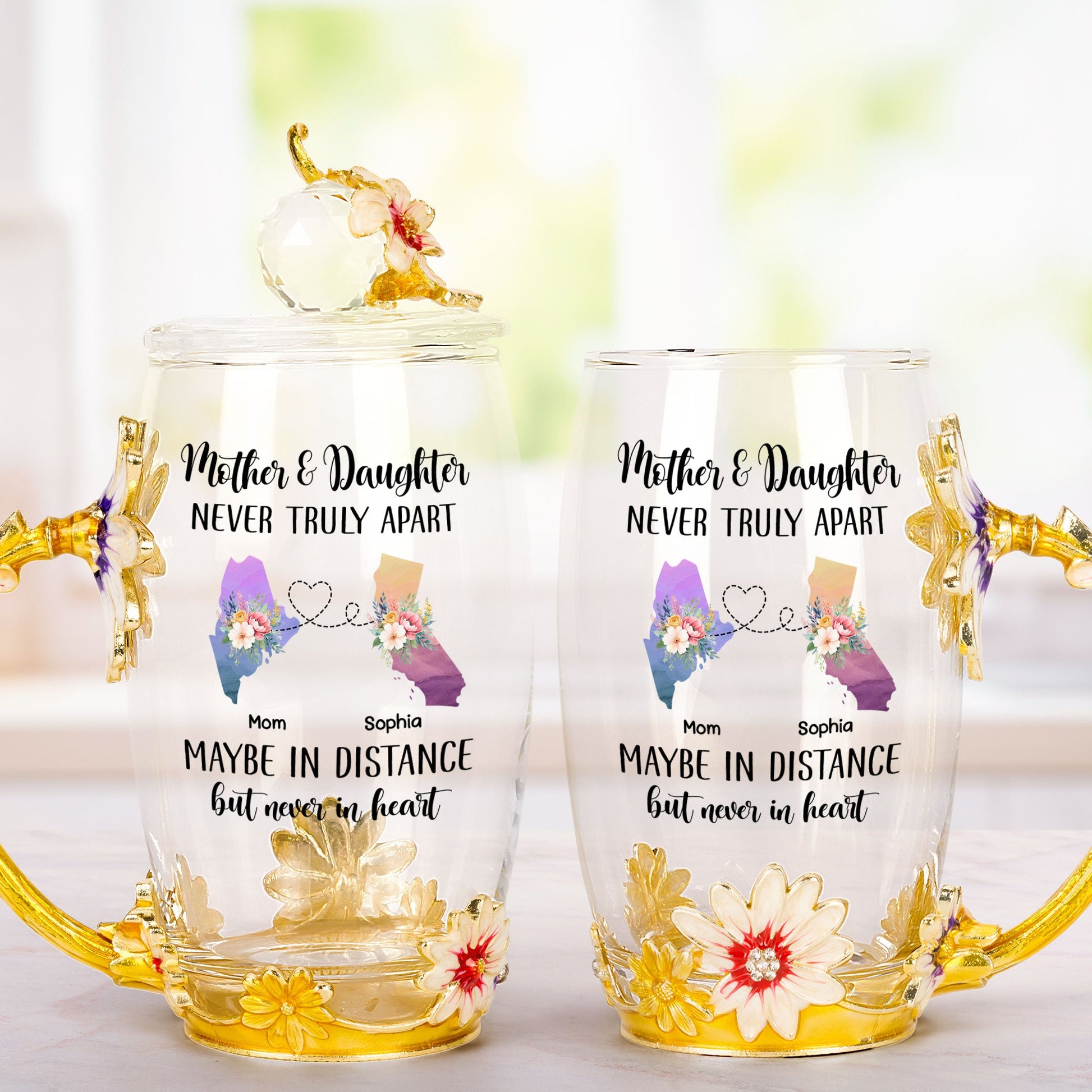 The "Mother & Daughters Never Truly Apart Maybe In Distance But Never In Heart" Enamel Flower Tea Cup beautifully symbolizes the unbreakable bond between mothers and daughters, even in a long-distance relationship. This elegant tea cup features delicate floral designs, making it not just a functional item but a cherished keepsake. Each time you sip your favorite tea, it serves as a reminder of the love and connection you share, despite the miles between you. Perfect for sending to your daughter or keeping for yourself, this cup encourages reflection and warmth, reinforcing the message that distance may separate you physically, but your hearts remain intertwined forever. Celebrate that special bond with this heartfelt gift.