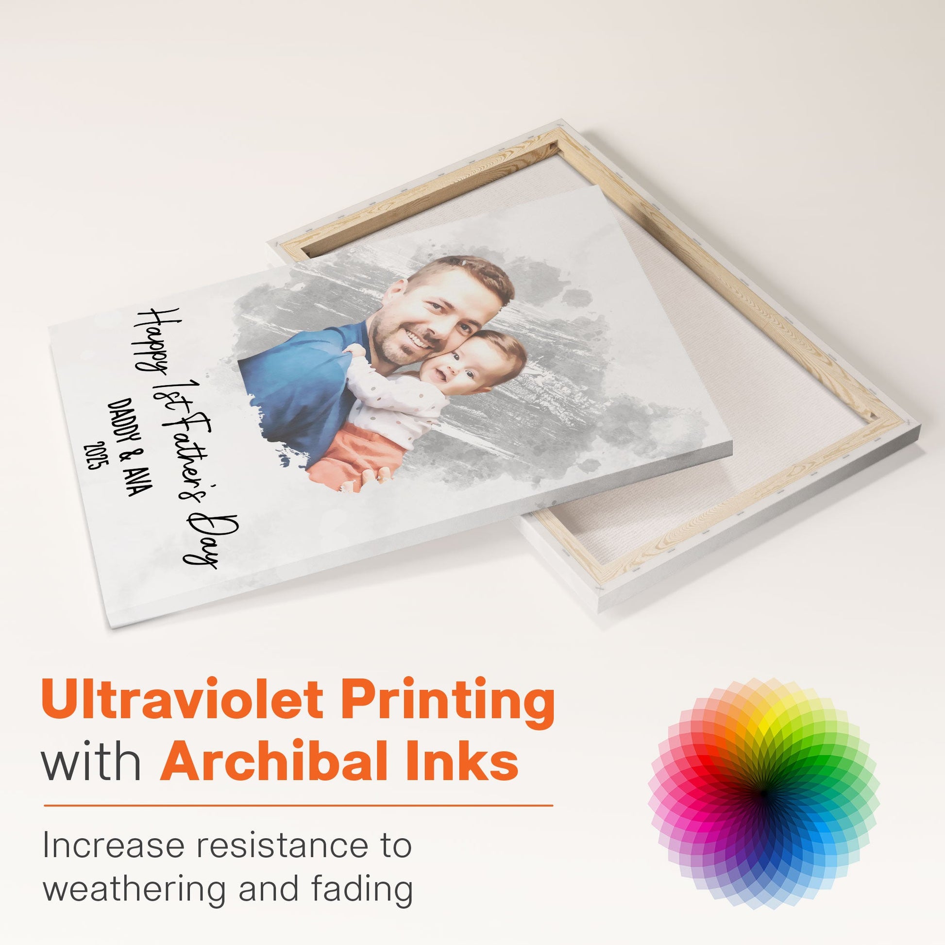 Watercolor Style Happy 1st Father's Day - Personalized Photo Poster/Canvas