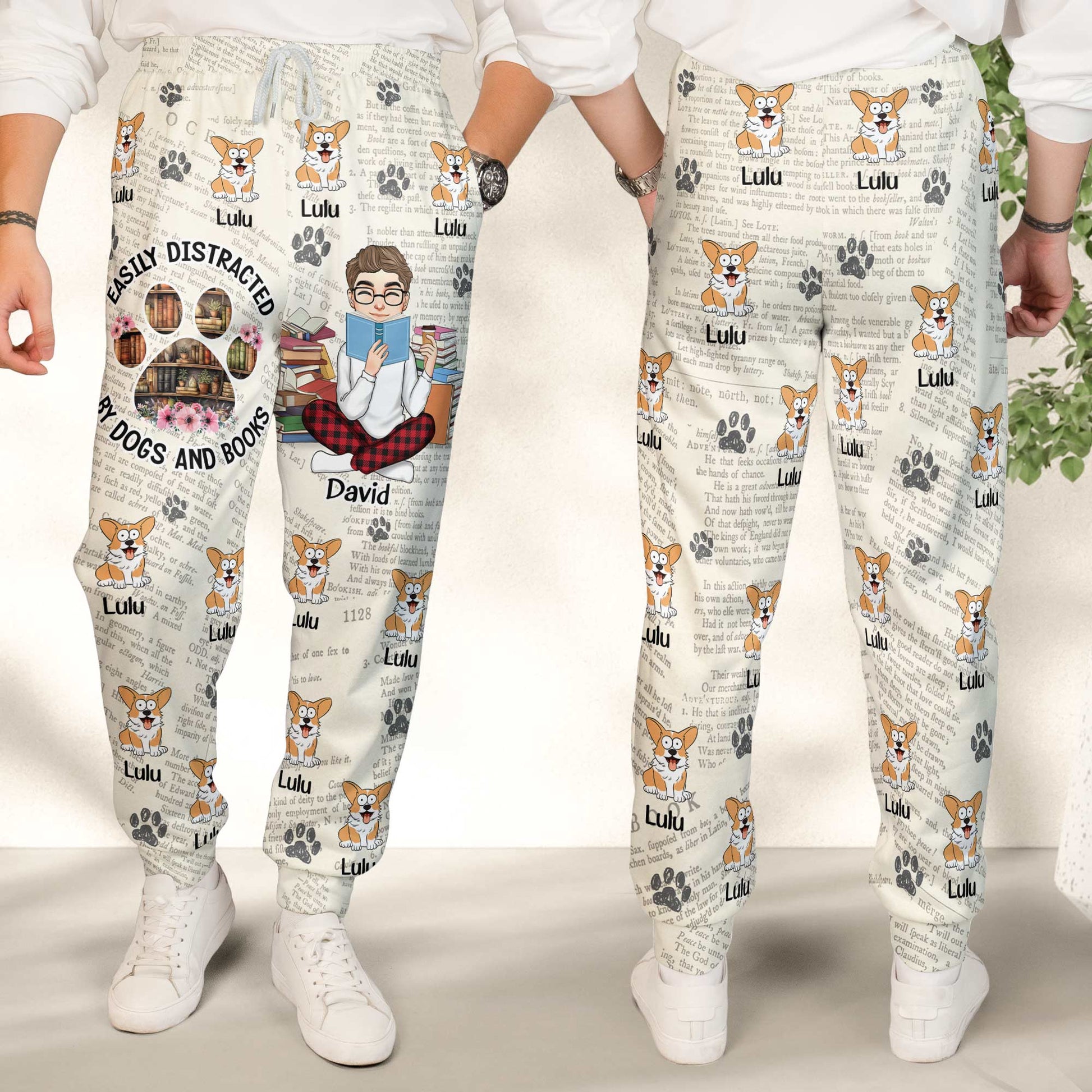 Easily Distracted By Dogs And Books - Personalized Sweatpants
