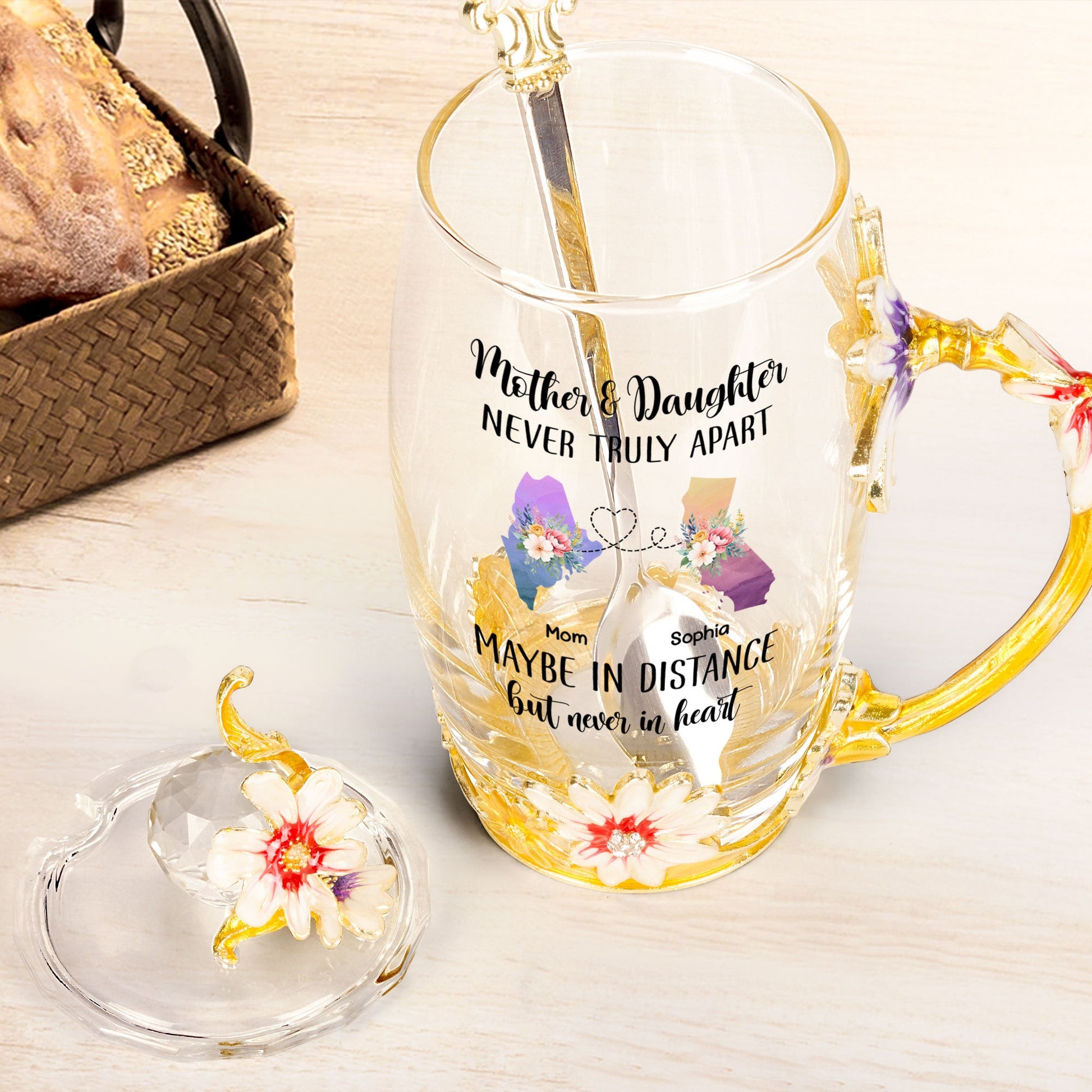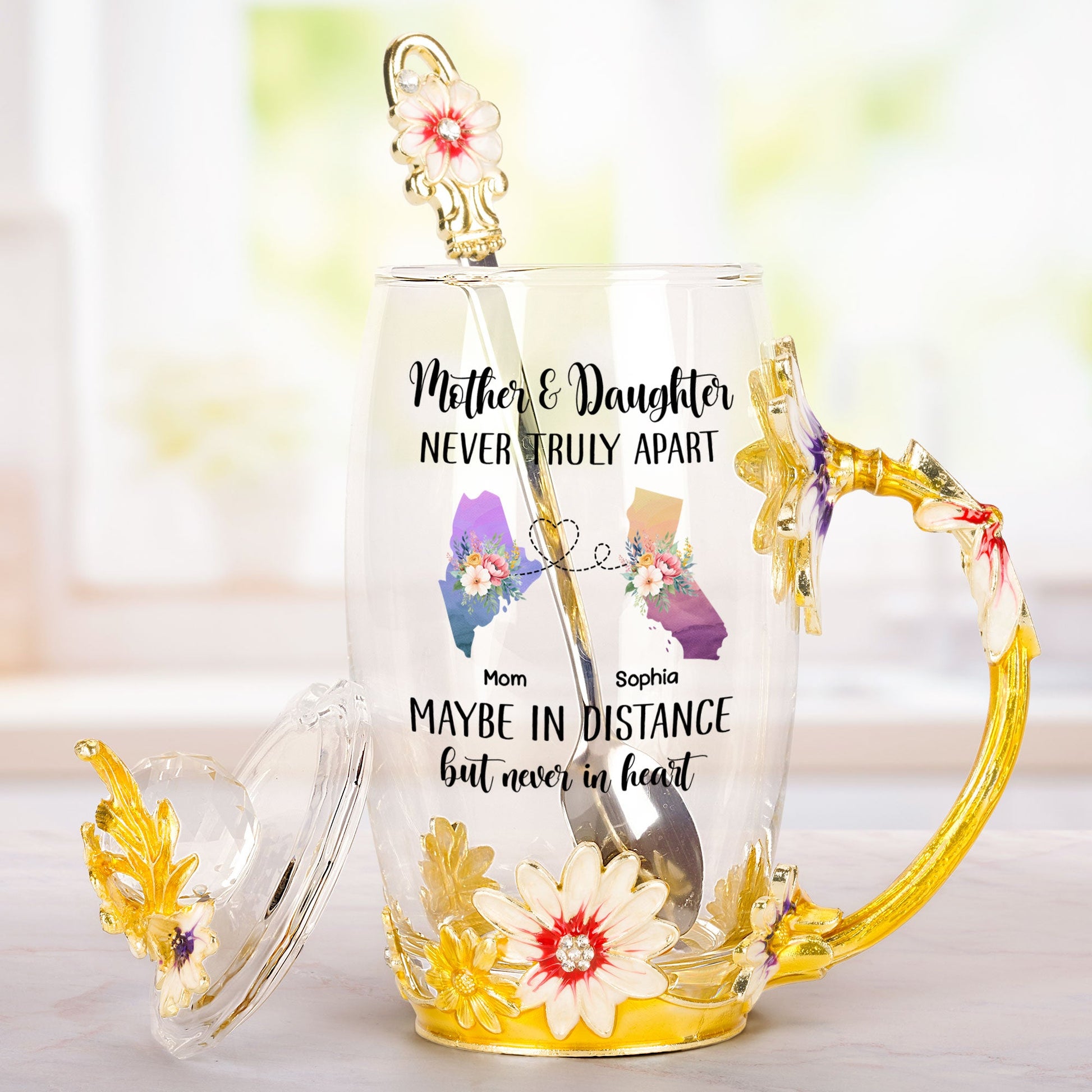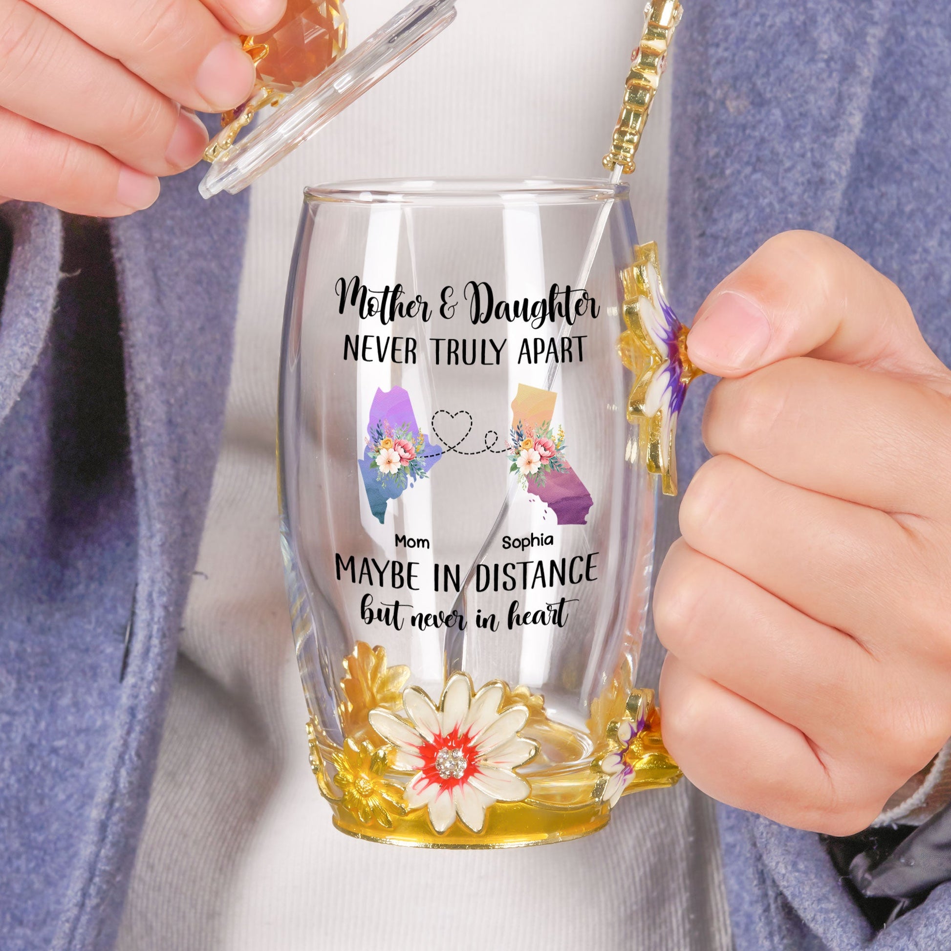 The "Mother & Daughters Never Truly Apart Maybe In Distance But Never In Heart" Enamel Flower Tea Cup beautifully symbolizes the unbreakable bond between mothers and daughters, even in a long-distance relationship. This elegant tea cup features delicate floral designs, making it not just a functional item but a cherished keepsake. Each time you sip your favorite tea, it serves as a reminder of the love and connection you share, despite the miles between you. Perfect for sending to your daughter or keeping for yourself, this cup encourages reflection and warmth, reinforcing the message that distance may separate you physically, but your hearts remain intertwined forever. Celebrate that special bond with this heartfelt gift.