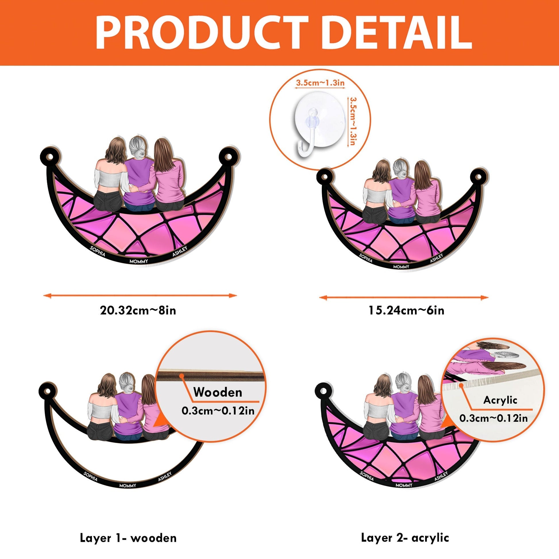 - The front of this suncatcher is made from premium natural wood and mounted on acrylic plexiglass.